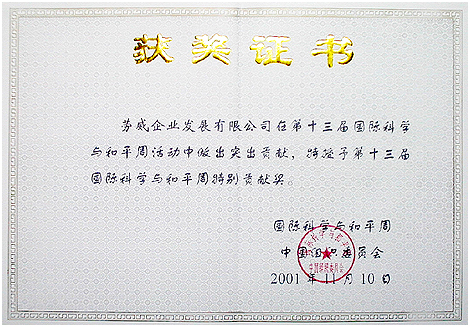 During the International Week of Science and Peace held in Beijing on November 10, 2001, Mr. Lam Fai Yuen, a founder of WOWI Enterprise Development Limited had the honour to present Mr. Kofi Annan, Secretary General of the United Nations a WOWI® watch in conveying to the world Chinese people's desire for peace. Mr. Sales, a representative of the United Nations received it on behalf of Mr. Annan. Mr. Lam specially selected this watch, the same model (Model # 2130) presented to Chinese Gold Medallists during the Sydney 2000 Olympics because the spirit of IWOSP is the same as that of the Olympics. Both are aiming at the promotion of peace and justice. A Certificate of Special Contribution was granted to WOWI Enterprise Development Ltd during the 13th International Week of Science and Peace.